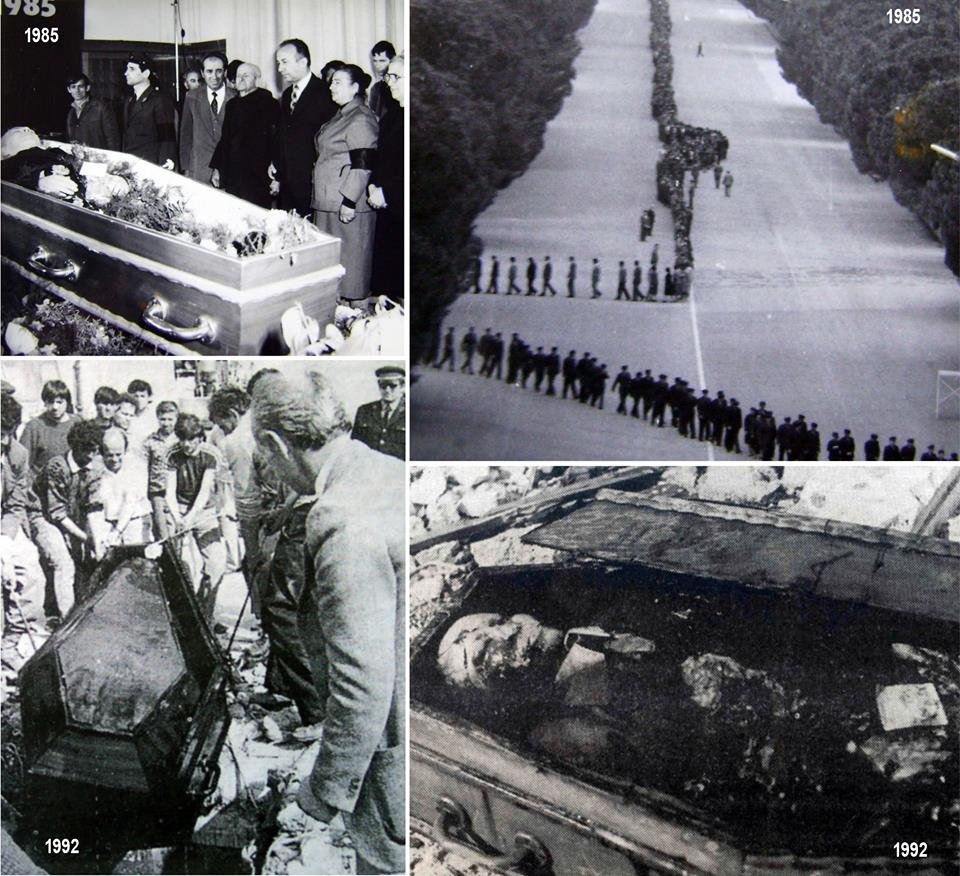 Një rast të tillë përbën edhe çështja e zhvarrimeve të kryera më datat 2-3 maj 1992, në Varrezat e Dëshmorëve të Kombit në Tiranë. Ato në fakt kanë qenë veprime krejt të zakonshme, siç ndodh në transferimet e varrezave.
