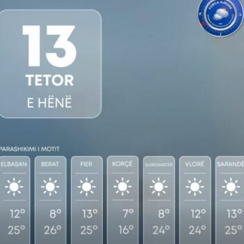 Ditën e Hënë vendi ynë do të ndikohet nga kushte atmosferike të qëndrueshme. Moti parashikohet i kthjellët në të gjithë territorin pa përjashtuar vranësira të pakta deri mesatare kalimtare.