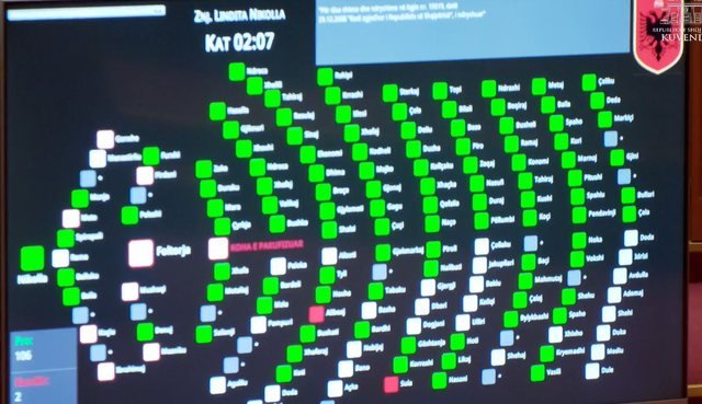 Kuvendi ka miratuar me 106 vota pro dhe dy kundër ndryshimet e Kodit Zgjedhor. Dy deputetët që votuan kundër ishin Enkelejd Alibeaj dhe Dashnor Sula. Ndryshimet morën votat e nevojshme pasi Partia Socialite dhe Partia Demokratike arritën marrëveshjen për votën e diasporës dhe formulën e listës së kandidatëve për deputetë.