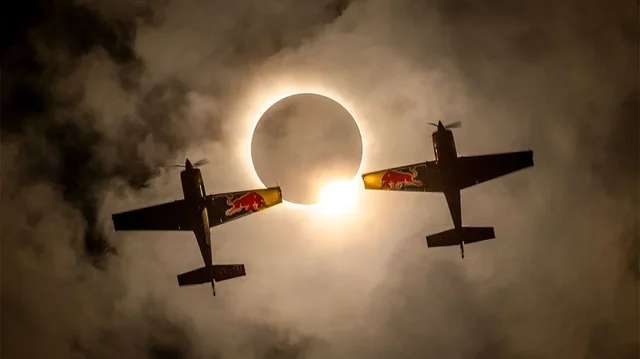 Pamje të këtij eklipsi janë ndarë në rrjetet sociale ku duket fenomeni i jashtëzakonshëm. Por nga pamjet e ndara së fundmi disa pilotë këtë fenomen e kanë festuar për mes një fluturimi të veçantë të cilin mund të kenë vetëm një herë shans në jetë. Pilotët Kevin Coleman dhe Pete McLeod fluturuan në një formacion paralel vetëm një metër larg njëri-tjetrit dhe 457 metra në qiell, ndërsa fotografët e njohur Mason Mashon dhe Dustin Snipes i fotografuan nga toka.