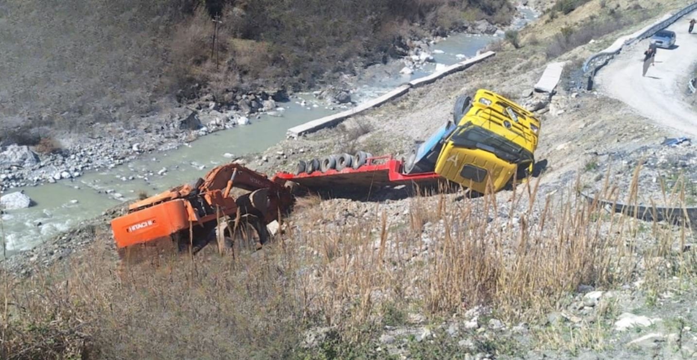 Një aksident i rëndë ka ndodhur në dalje të fshatit Moglicë të Korçës, ku një mjet i tonazhit të rëndë, duke transportuar një ekskavator, ka dalë nga rruga dhe ka përfunduar disa metra poshtë aksit nacional.