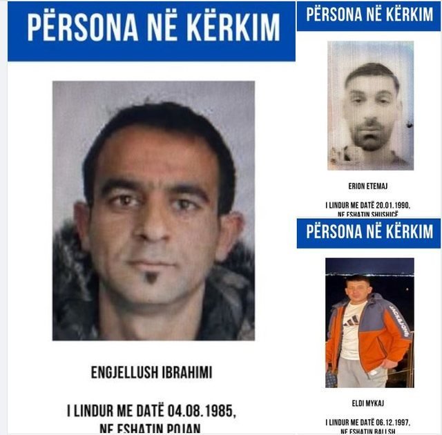 Policia gjithashtu ka publikuar identitetin e të kërkuarve të cilët janë Erion Etemaj, Engjellush Ibrahimi dhe Engjellush Ibrahimi. Policia ka kërkuar nga të gjithë qytetarët që posedojnë informata lidhur me vendndodhjen e këtyre personave të njoftojnë stacionin policor më të afërt ose përmes numrave kontaktues.