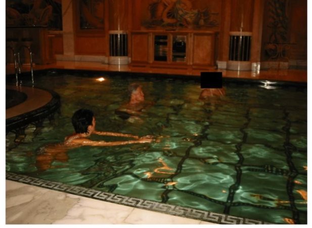 Në njërën prej tyre, Clinton shihet duke notuar pranë dy personave. Identiteti i njërit është redaktuar me një katror të zi, ndërsa tjetri duket se është Ghislaine Maxwell, bashkëpunëtorja e dënuar e Epstein, e cila po vuan një dënim 20-vjeçar për trafikim seksual.