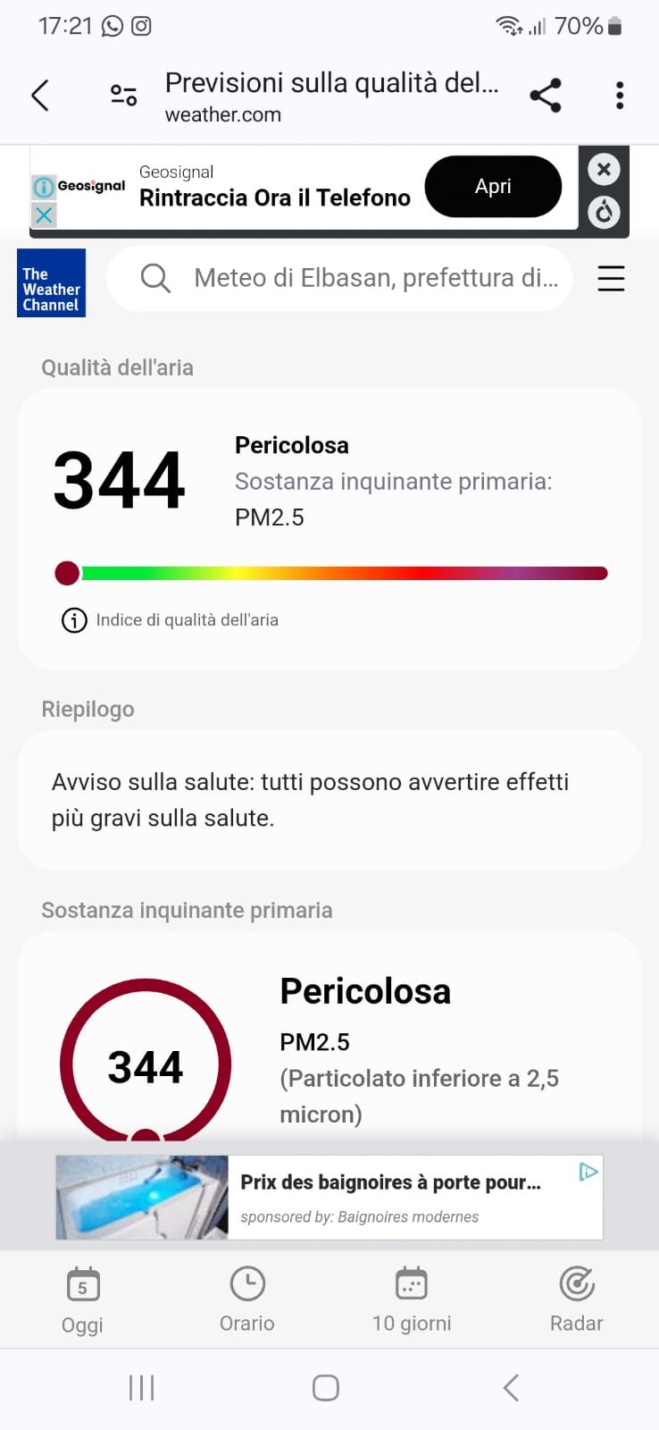 “Në aplikacion thuhet se niveli i PM 2.5(grimca të ngurta në ajër) është i rrezikshëm. Edhe telefoni thote qe po vdesim nga ajri”.