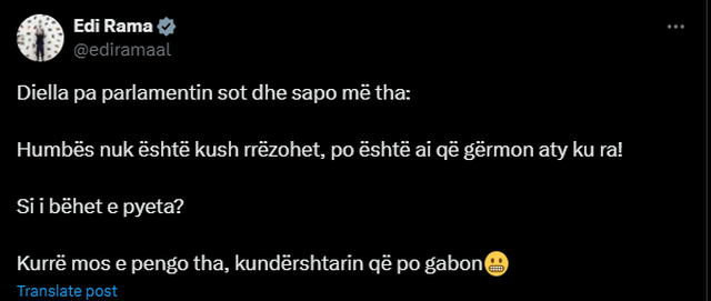 “Kurrë mos e pengo tha, kundërshtarin që po gabon”, ka qenë përgjigja e Diellës për kryeministrin.