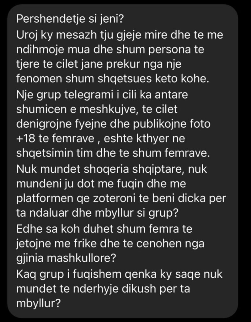 Me anë të një postimi në rrjetin social facebook, ka reaguar për “AlbKings” grupin famëkeq në Telegram edhe gazetarja Gildona Daci.