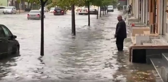 Reshjet e dendura të shiut kanë përmbytur jo vetëm disa rrugë dhe kryqëzime, por edhe qendrën historike dhe spitalin.