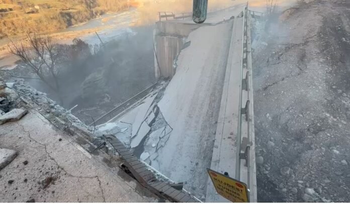 Ura pësoi dëmtime fatale pas një lëvizjeje të fuqishme të masivit të dheut, që destabilizoi themelet dhe e bëri të pamundur çdo ndërhyrje riparuese. Specialistët e terrenit konfirmuan se zhvendosja e trupit të rrugës dhe çarja e shtresave mbajtëse e kanë nxjerrë jashtë funksioni totalisht strukturën ekzistuese, duke e kthyer në një rrezik potencial për qarkullimin dhe sigurinë publike.
