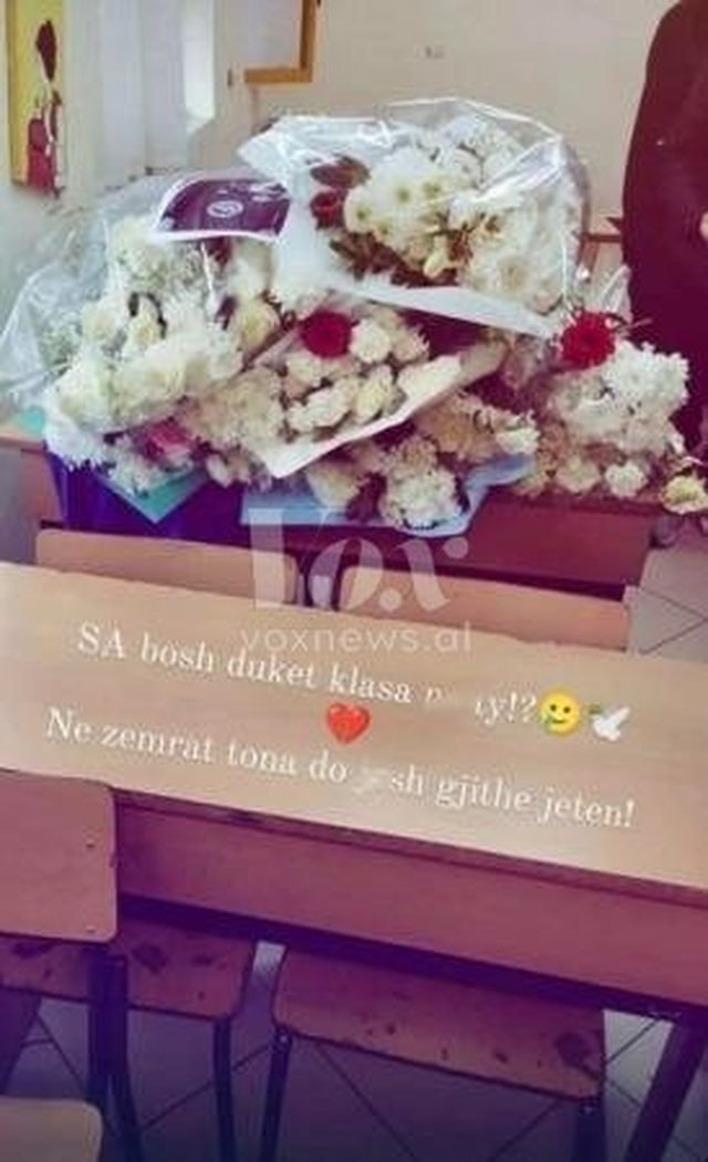 Në një postim në rrjete sociale ku duken lulet e bardha shkruhet “Sa bosh duket klasa pa ty, në zemrat tona do të jesh gjithë jetën”.
