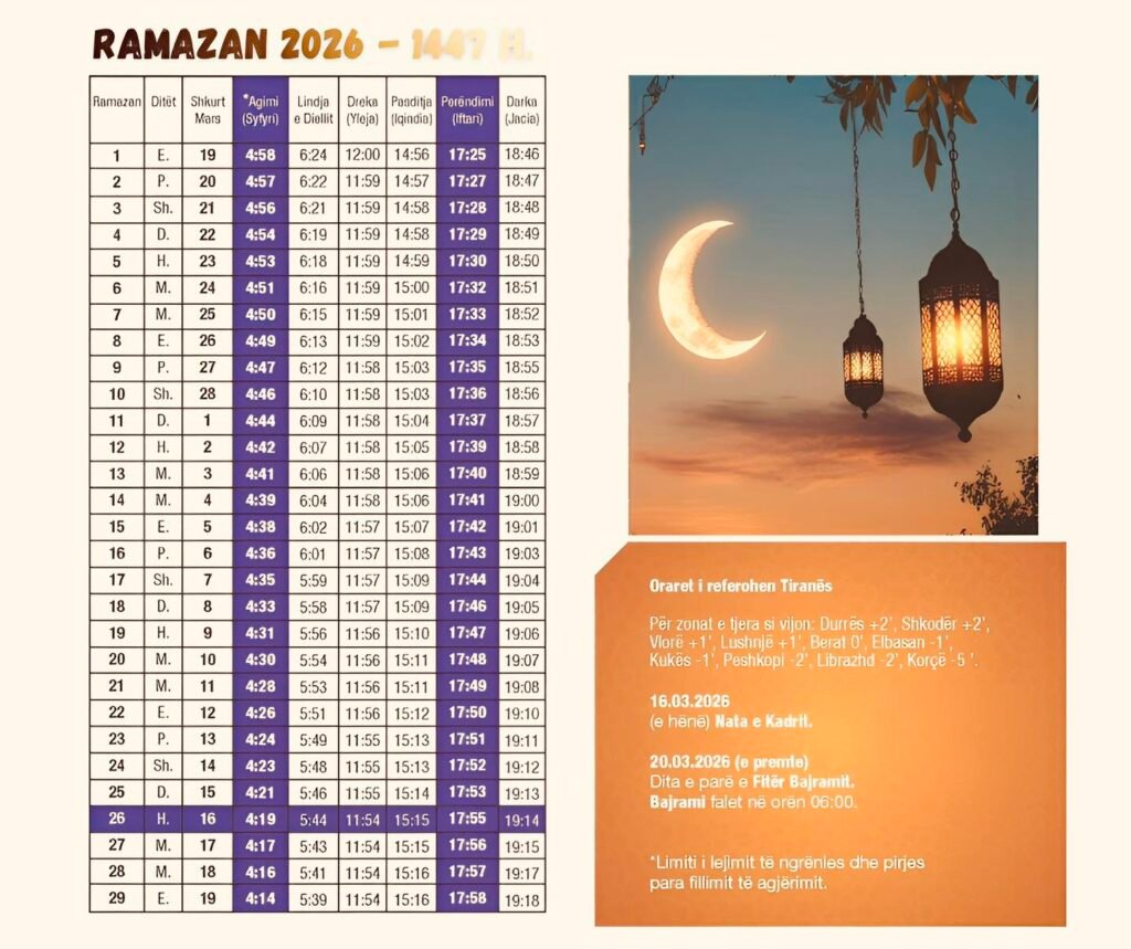 Muaji i nëntë i kalendarit islamik hënor shënon kohën e agjërimit, reflektimit shpirtëror dhe përkushtimit ndaj besimit.