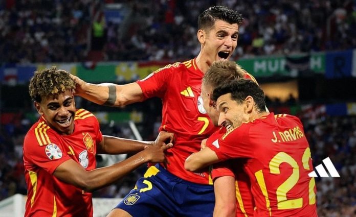 GJERMANI – Spanja është finalistja e pare e Europianit pasi muni në gjysmëfinalen e Mynihut Francën e yjeve të mëdhej. Pas një fillimi të vrrullshëm të kësaj ndeshjeje nga Spanjës, ishte Franca ajo që kaloi në avantazh në minutën e 9-të. Asist i Mbappe dhe godija e Kolo Muani. Ishte ky moment kur francezët morën frenat e lojës dhe mund të shënon edhe më tepër nëse do të ishin më të kujdesshëm.