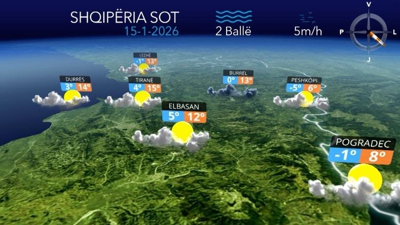 Era do të fryjë me drejtim verilindje– juglindje, me shpejtësi mesatare 8 m/s.