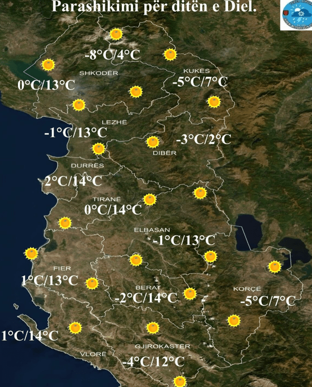 Edhe gjatë ditës së nesërme në të gjithë vendin do të ketë mot të kthjellët por me temperatura të ulëta, të cilat në zonat malore do të arrijnë deri në -8 gradë celcius.