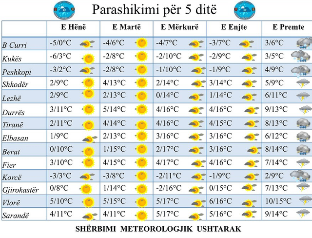 Kjo situatë me vlera jo normale dhe atipike për stinën që ndodhemi vjen si pasojë e anomalive të motit, duke na dhënë një ‘shije’ të një jave pranverore, por kjo situatë ndryshon të premten ku parashikohet rikthim i reshjeve të shiut në të gjithë territorin, raporton Shërbimi Meteorologjik Ushtarak.