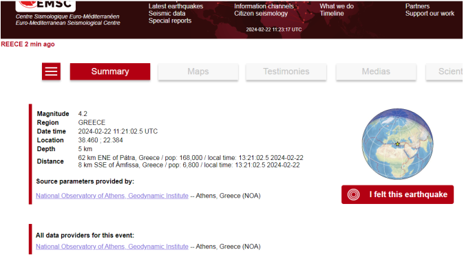 Pak minuta më parë, një tërmet me magnitudë 4.2 ka goditur Greqinë.