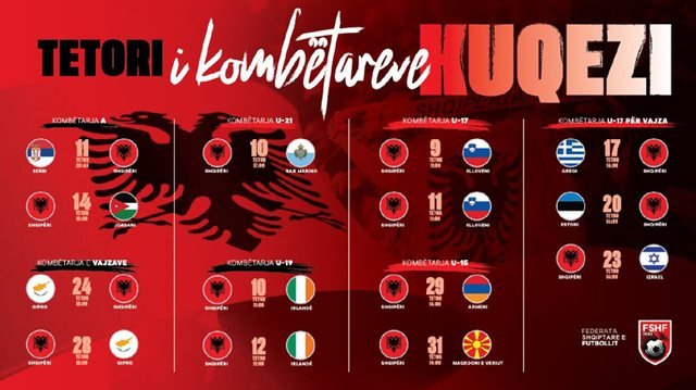 TIRANE – Pas një shtatori të mbushur me emocione, tetori do të sjellë sërish një kalendar të ngjeshur me ndeshje për të gjitha kombëtaret shqiptare. Nga Kombëtarja A, te skuadrat e moshave dhe vajzat kuqezi, të gjitha ekipet do të zbresin në fushë për të përfaqësuar Shqipërinë.
