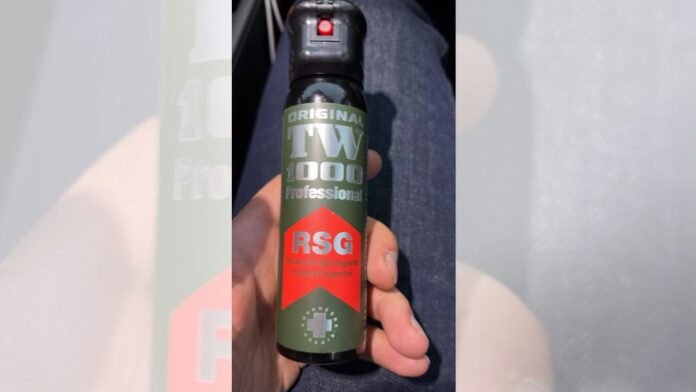 Në foton duket edhe modeli i spraj me piper i përdorur nga policia gjatë protestës për shpërndarjen e protestuesve gjatë tubimit të mbajtur para Kryeministrisë.