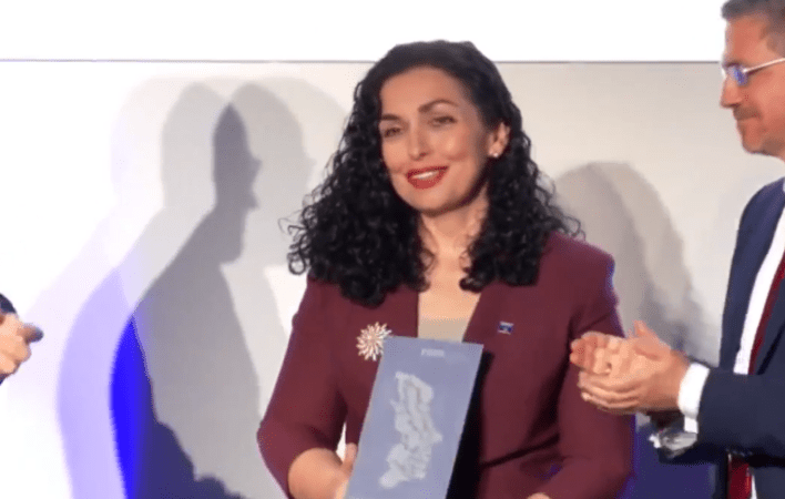 Presidentja e Kosovës, Vjosa Osmani është nderuar sot me çmimin M100 Media Award, çmim që u jepet personaliteteve që janë të përkushtuar për forcimin e demokracisë, sundimin e ligjit, lirisë së shprehjes dhe lirisë së shtypit dhe mbrojtjes së vlerave evropiane.