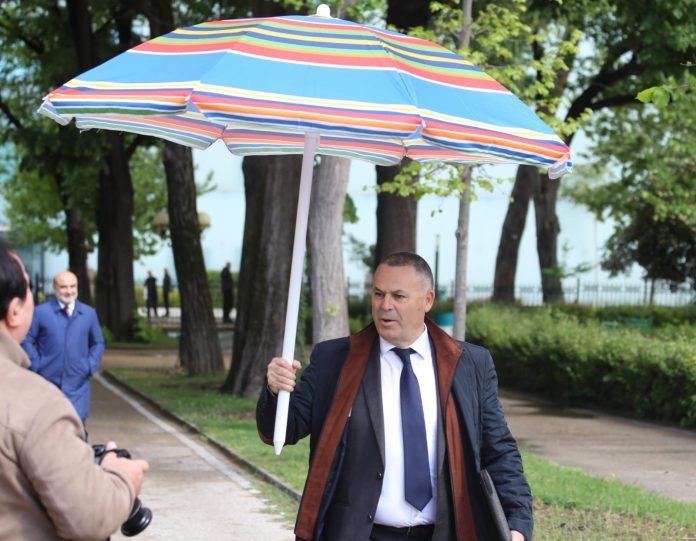 Këtë të enjte, deputeti i Partisë Demokratike, Asllan Dogjani, ka shkuar në Kuvend me çadër plazhi.
