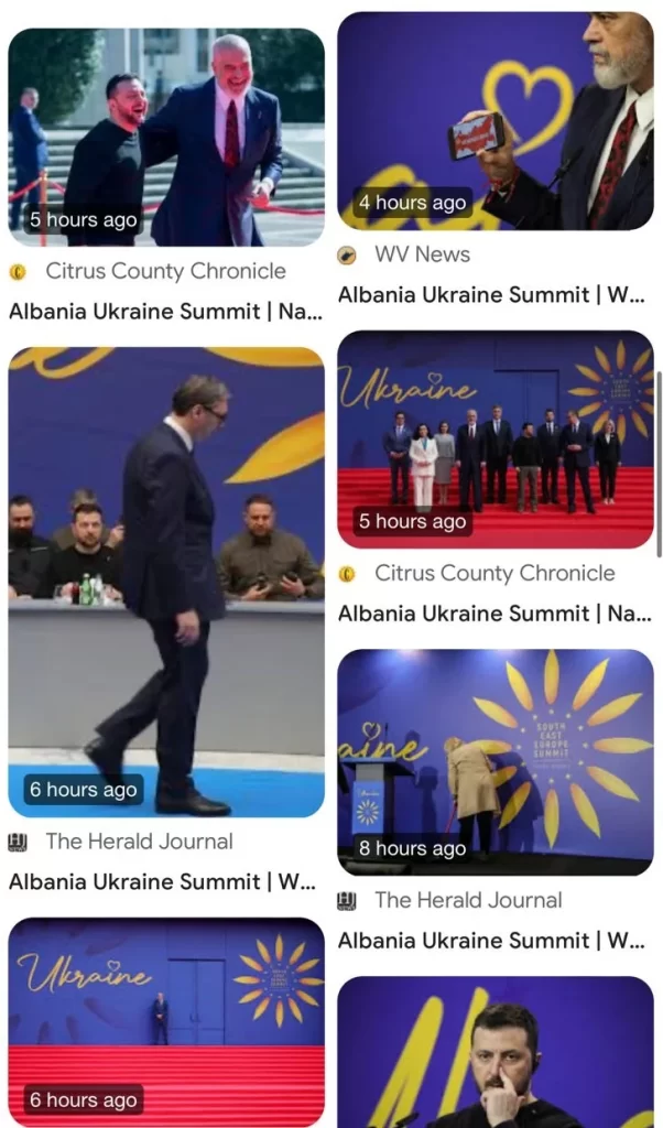 Fotot e mëposhtëme nga samiti, të shkrepura nga fotoreporteri Armando Babani të agjencisë amerikane të lajme AP, po bëjnë xhiro në mediat botërore, të cilat i kanë bërë jehonë deklaratave të Zelensky-t nga Tirana